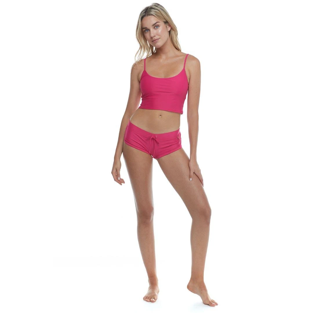 Everyone needs a sidekick, can we be yours? The Body Glove sporty Sidekick boy short bottom is as versatile as they come, perfectly suited for a dip in the ocean or a beachfront yoga class. Featuring a comfortable wide band and decorative front tie, these shorts offer fuller coverage and a traditional rise for an undeniably comfy fit.