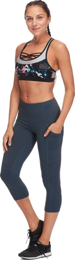 The Women’s WORK IT Performance Capri Legging by Body Glove wicks moisture, ideal for summer eves and mornings. The capri cut is in a breathable moisture wicking fabric. Flatlock seams reduce abrasion points. Side slash pockets hold essentials. The gusset makes movement easy and natural.